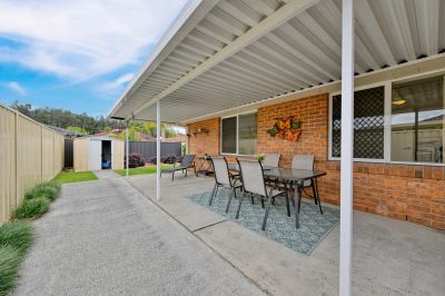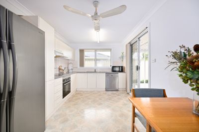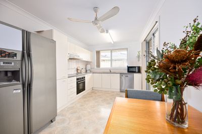 This leads out to the fully fenced and totally private backyard, where a large covered patio area is ideal for alfresco entertaining. A sunny, easy-care lawn, with beautifully established gardens, is well enough space for the kids or pets to run around, whilst also giving the option to lock up and leave without a worry about huge maintenance.