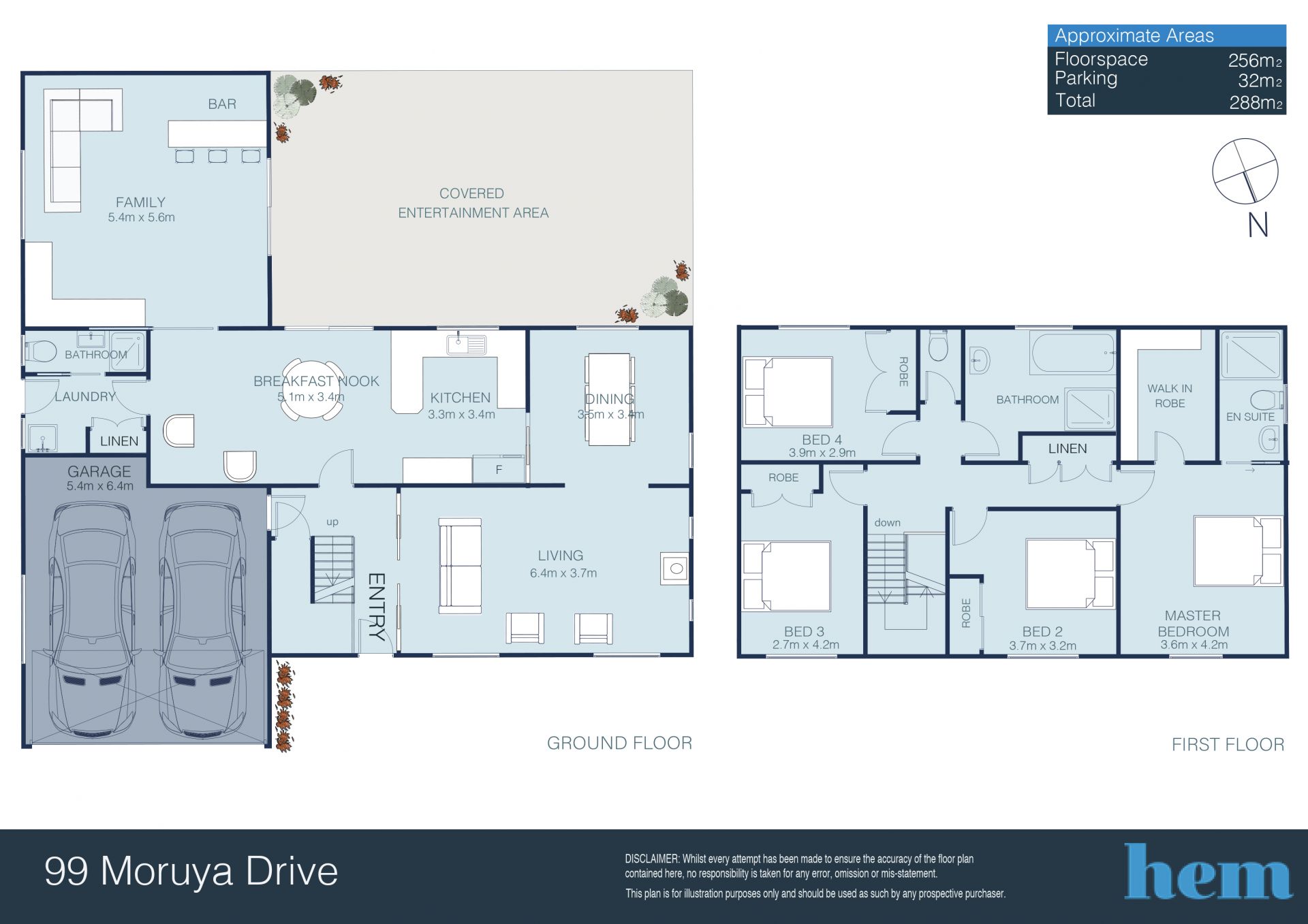 Upstairs, all four bedrooms are very generously proportioned. The master bedroom has a large walk-in-wardrobe, its own ensuite bathroom and air-conditioning, whilst bedrooms two, three and four have built-ins and are serviced by a large family bathroom. The double garage has plenty of workbench space and internal access, a third bathroom is in the laundry and there is 3.2kw of solar panels on the roof.