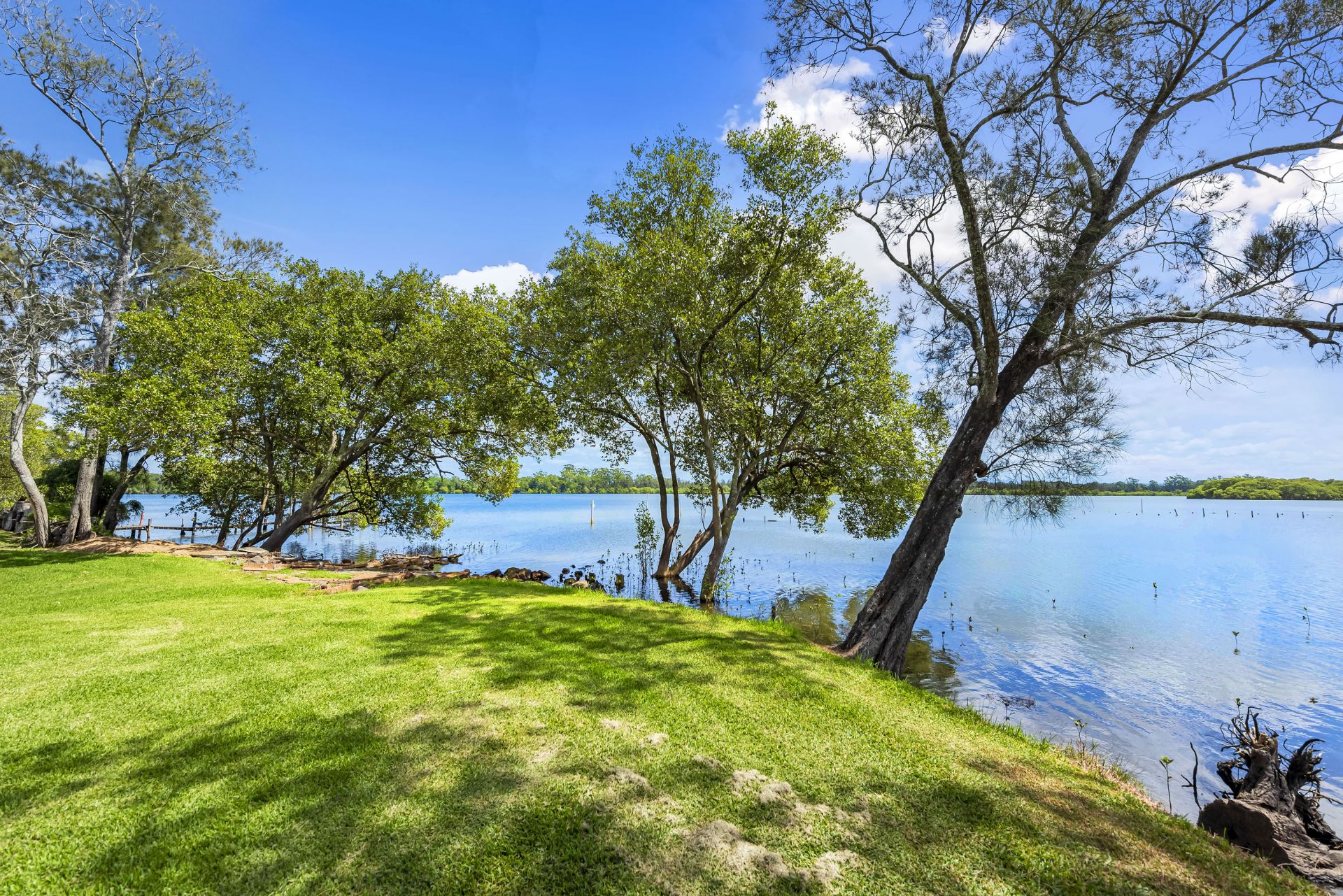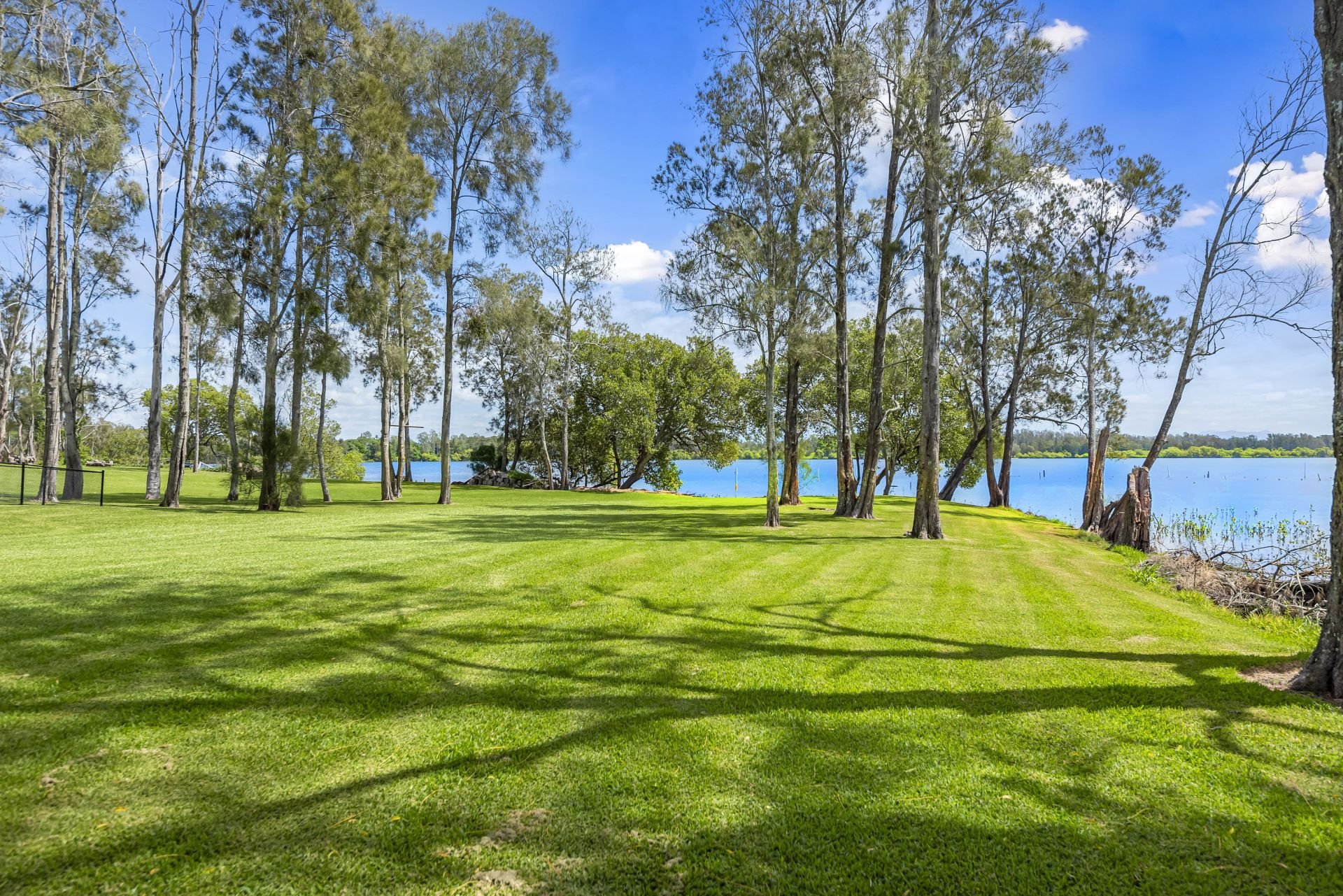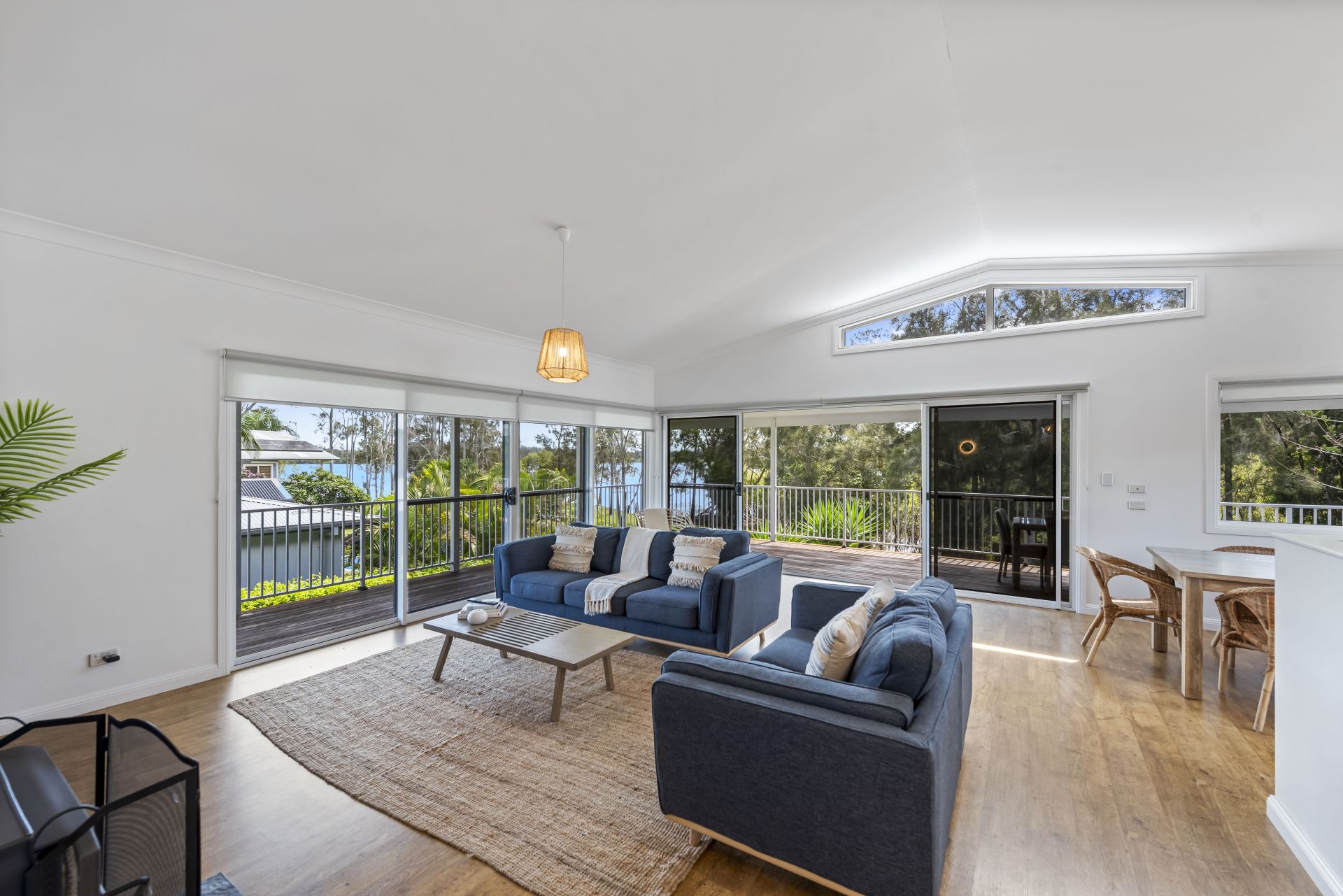 The stylish and elegant interior features multiple living areas with American oak flooring and raked ceilings that all flow seamlessly to the wide, wrap around verandahs offering vast river views.
