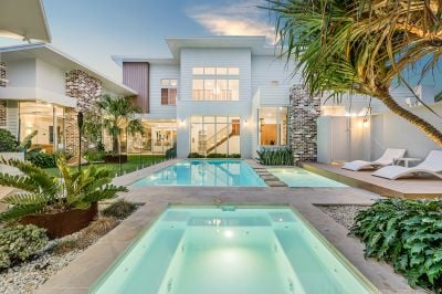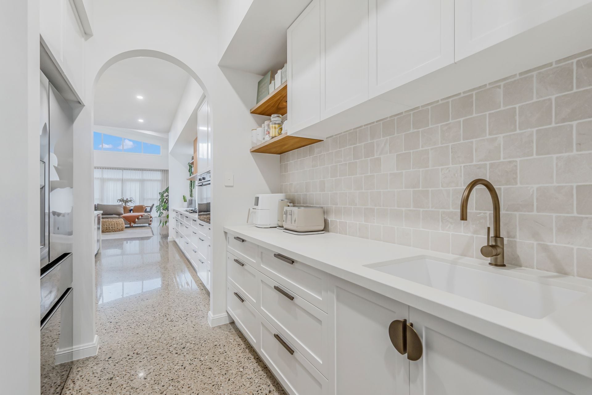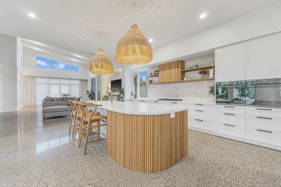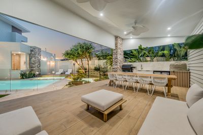 For those in search of the ultimate in outdoor entertaining, then no expense has been spared in the design and construction of this totally private, resort style outdoor living zone. Here, the huge covered lounge/dining zone features a full outdoor kitchen and looks back over meticulously landscaped gardens, easy-care lawns and the most incredible concrete pool which boasts a magnesium swimming pool, children's wading pool and heated spa. The honed concrete, custom arched sliding screens and premium finishes enhance the home's sophisticated charm and make this the dream space for outdoor living.