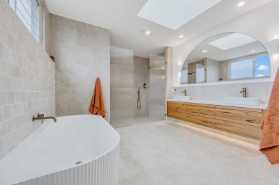Back inside and upstairs, you are welcomed into a serene retreat, where a small living zones will lead to two king-sized kid's bedrooms and a centrally positioned family bathroom. Whilst, in its own wing, the spectacular master suite offers a size and finish rarely found and features high ceilings, His and hers walk-in-robes and a captivatingly luxurious ensuite with custom timber double vanity cabinetry, huge walk-in double shower and sleek curved feature bath.