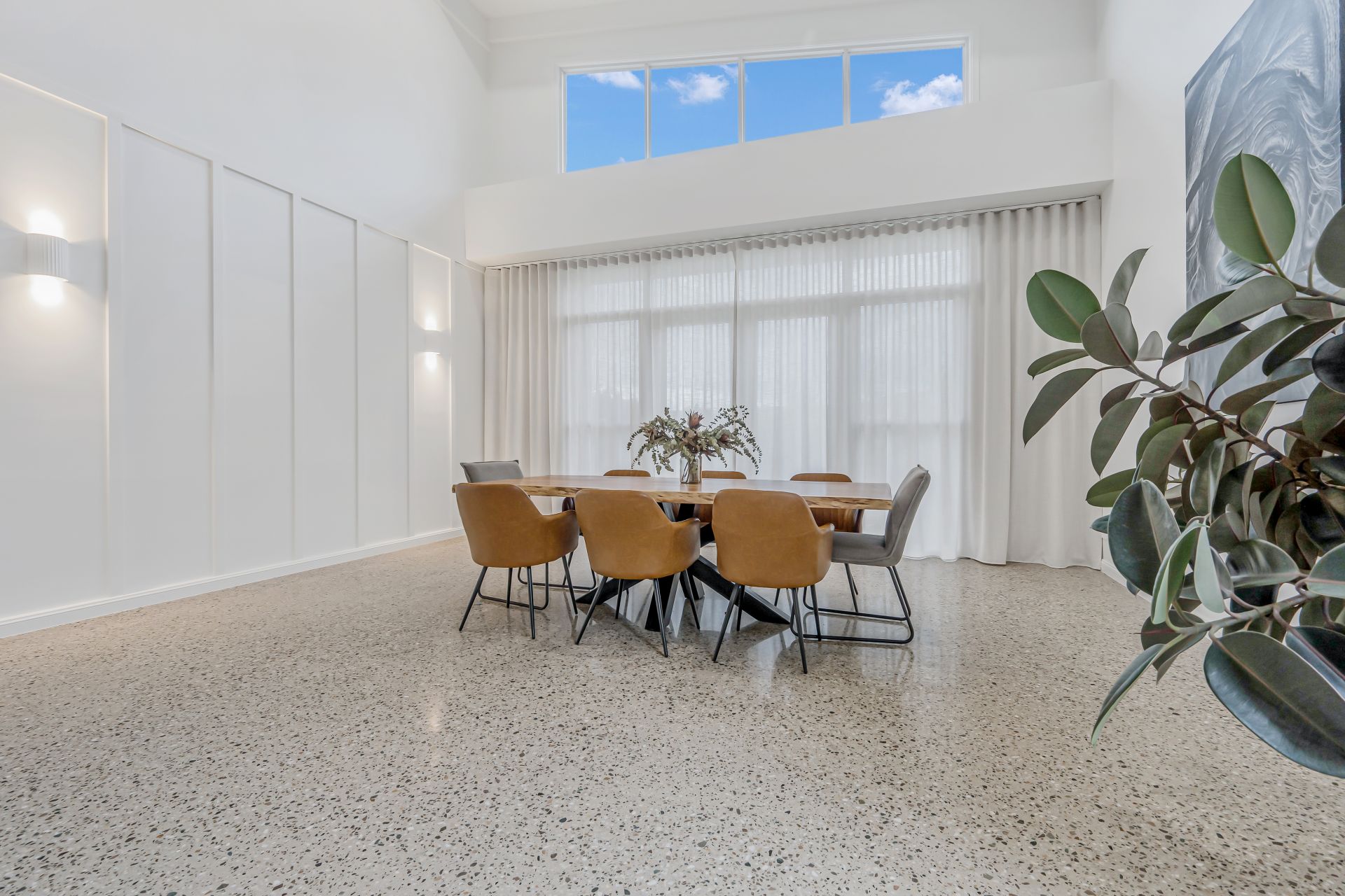 Step through landscaped gardens and into the magnificent entry where soaring double-height ceilings, banks of custom glazing and premium polished concrete flooring set the scene for what lies ahead.