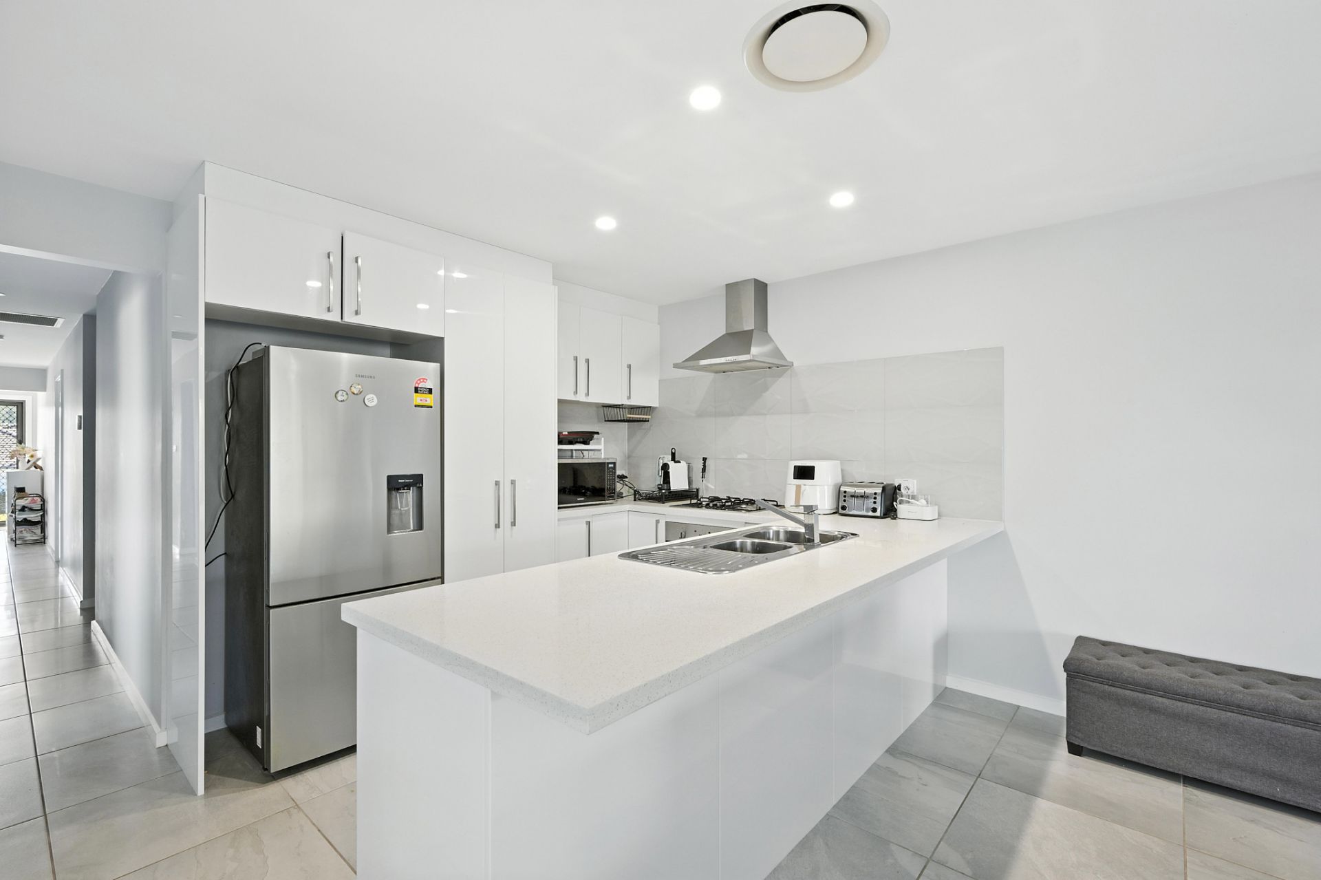 Step inside the wide entry and you'll discover contemporary, fresh décor and a well-designed free-flowing layout with multiple living options. Positioned to the front of the home, there is a formal lounge/ media room, ideal for escaping to watch a movie, or even set it up as a home gym as the current tenants have done. At the heart of the home, the sundrenched open plan living area provides spacious lounge and dining zones and there is a superb kitchen with broad stone benchtops, plenty of storage, plumbed fridge space and all the mod-cons to provide the perfect hub for everyday family entertaining.