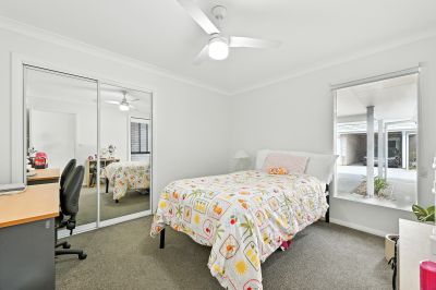 The oversized main bedroom sits privately at the rear, complete with mirrored double built in robe, ceiling fan, block out blind, sliding door to the side yard and a modern ensuite with hung vanity and frameless shower. Bedroom two is located at the front of the home, completely separate from the master to provide maximum privacy. It includes a mirrored double built in robe, ceiling fan and block out blinds and is serviced by the main bathroom with neutral tones, a hung vanity, frameless shower and waterfall shower head.