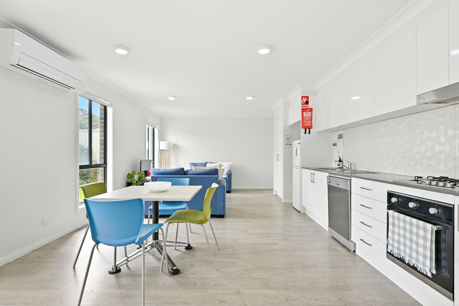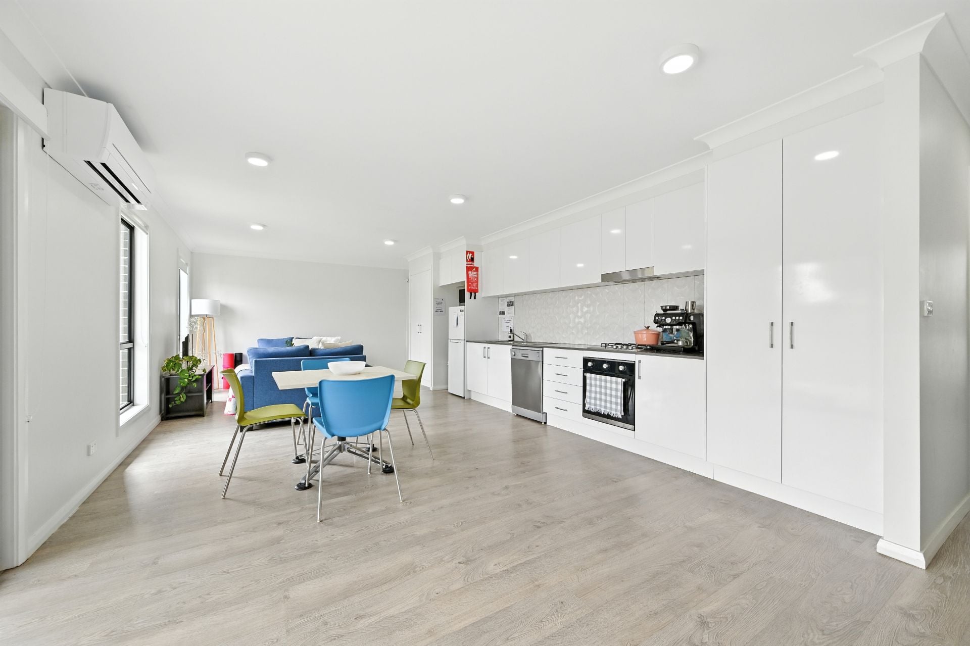 The floor plan flows beautifully, filled with natural light and designed for easy living. At the heart of the home, the combined open plan living, dining and galley style kitchen forms a bright hub for everyday living. This space features hybrid flooring, split system air conditioning and sliding door access to the private outdoors, while the kitchen is well appointed with a gas cooktop, electric oven dishwasher and an abundance of storage.