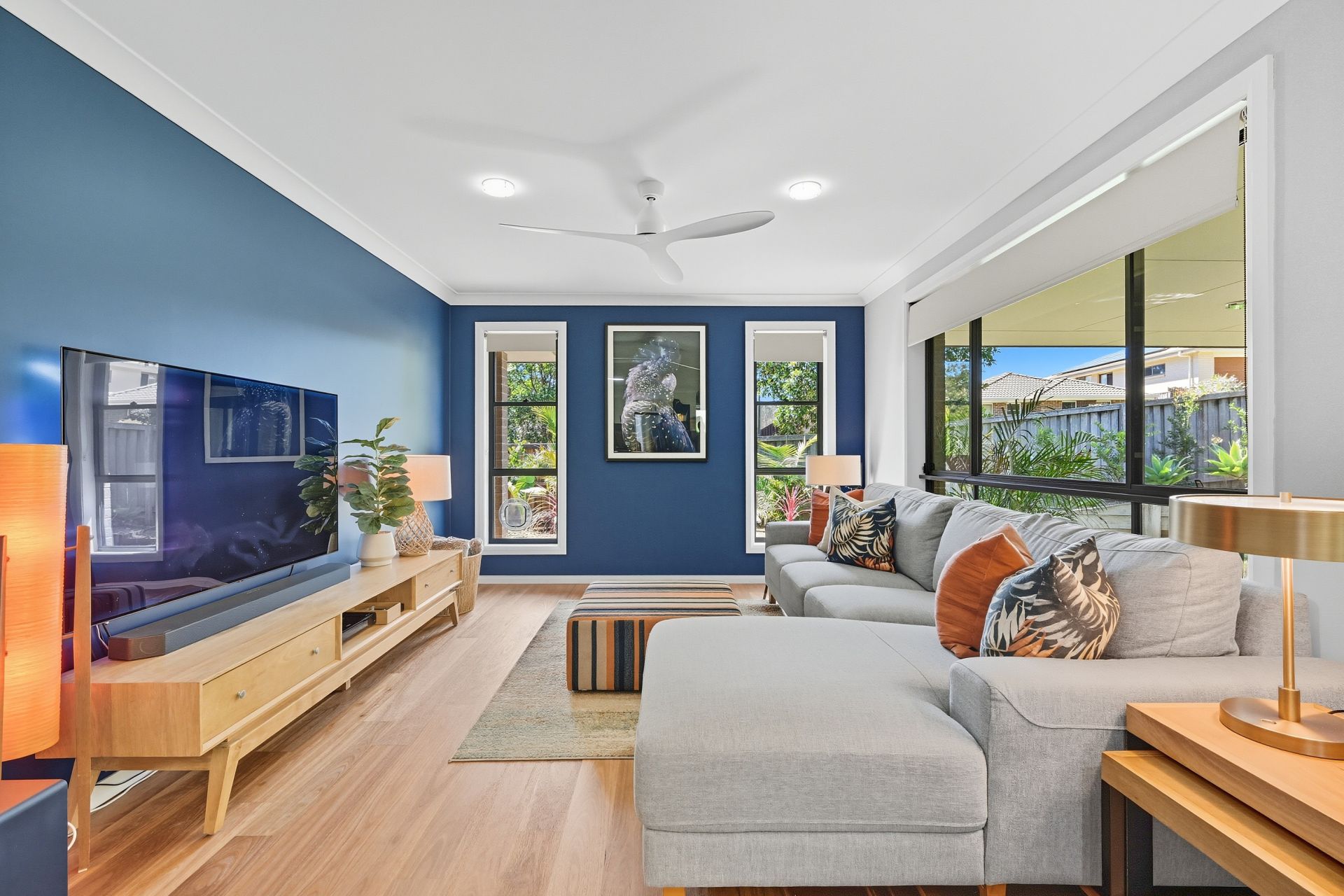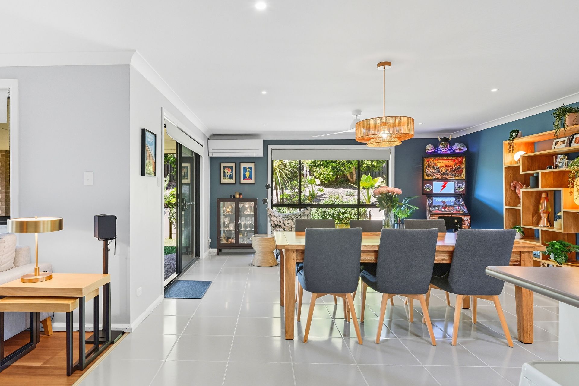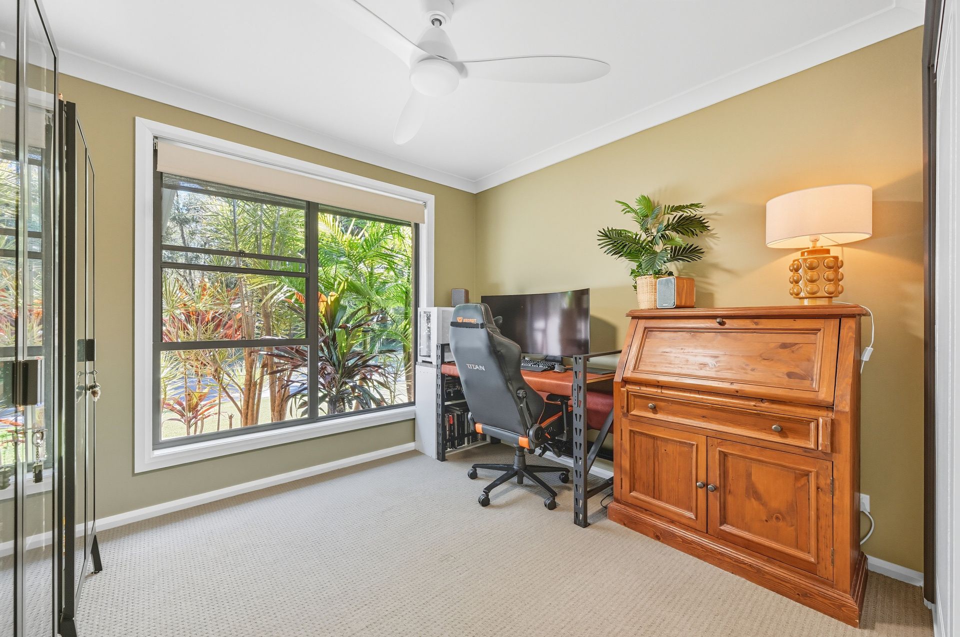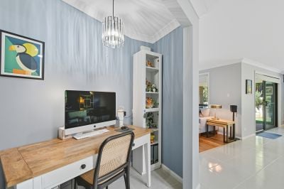 Behind an impressive façade, with wonderful landscaped gardens, as you enter, you are immediately struck by the chic finishes, appealing colour palette and stylish look that the owners have created. At the heart of the home, a vast open plan living area is bathed in sunlight and features banks of glazing to provide views of the lush native gardens from every angle. Here there is a large formal lounge zone with timber floors, a quality kitchen with masses of cabinetry and broad benchtops, a superb study nook area, and finally the dining and additional everyday living zone. Finished with air-conditioning and sophisticated decoration, this is a wonderful hub for everyday living.