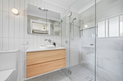 Back inside, there are four well-proportioned bedrooms and two stunning, renovated bathrooms. The master bedroom is set away by itself, overlooking the bush and features a walk-in-robe and an impressive ensuite with gorgeous floor-to-ceiling tiles, custom vanity and large shower. Three further bedrooms all have decent wardrobe space, ceiling fans and have their own individual decoration creating a great feel in each. These are serviced by a beautiful new family bathroom with bespoke finishes, "kit-kat" style tiling and bespoke and large separate shower and bath.