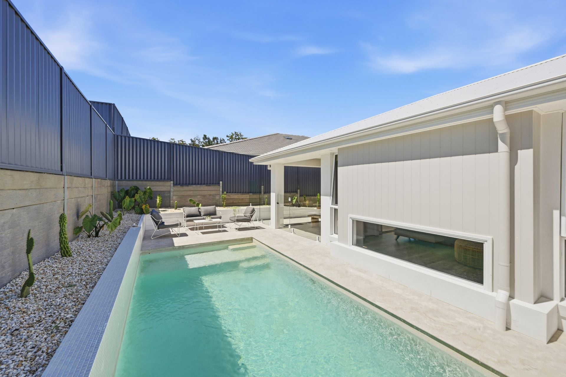The focal point of this home is the incredible indoor/outdoor living on offer. Quadruple stacker sliding doors lead seamlessly out to an enormous, completely tiled and covered alfresco area which flows out to a stunning concrete pool area, which can even be seen from inside through the masses of glazing. A summer BBQ here doesn’t get much better than spending it here. There is a great size yard where the kids, pets and green thumbs can also enjoy.