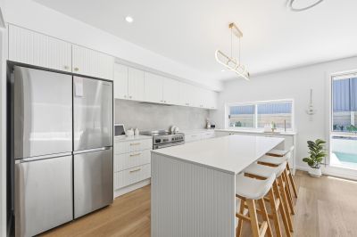Meticulously designed, with multiple custom upgrades, as soon as you step inside you are immediately impressed by the intelligently planned layout and superior finishing touches, that truly set this home apart. A wide central hallway and mudroom lead to the expansive, open plan main living area, where high ceilings and custom glazing, flood the space with natural light and offers a great hub for everyday life. Here, the designer kitchen is a real show-stopper. Featuring masses of custom-made joinery, high-end appliances, the biggest stone-topped breakfast bar bench and possibly the best butler’s pantry you will ever find, this kitchen is a true entertainers dream.