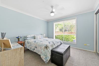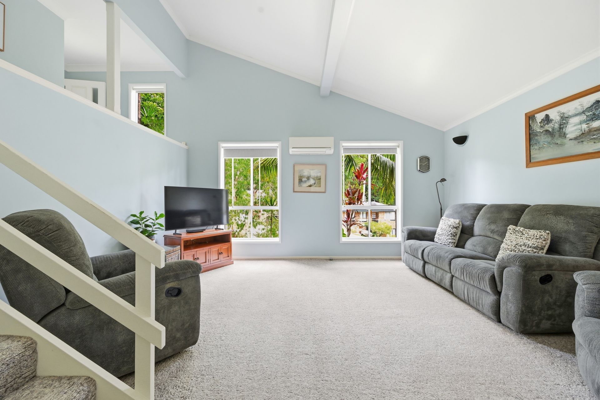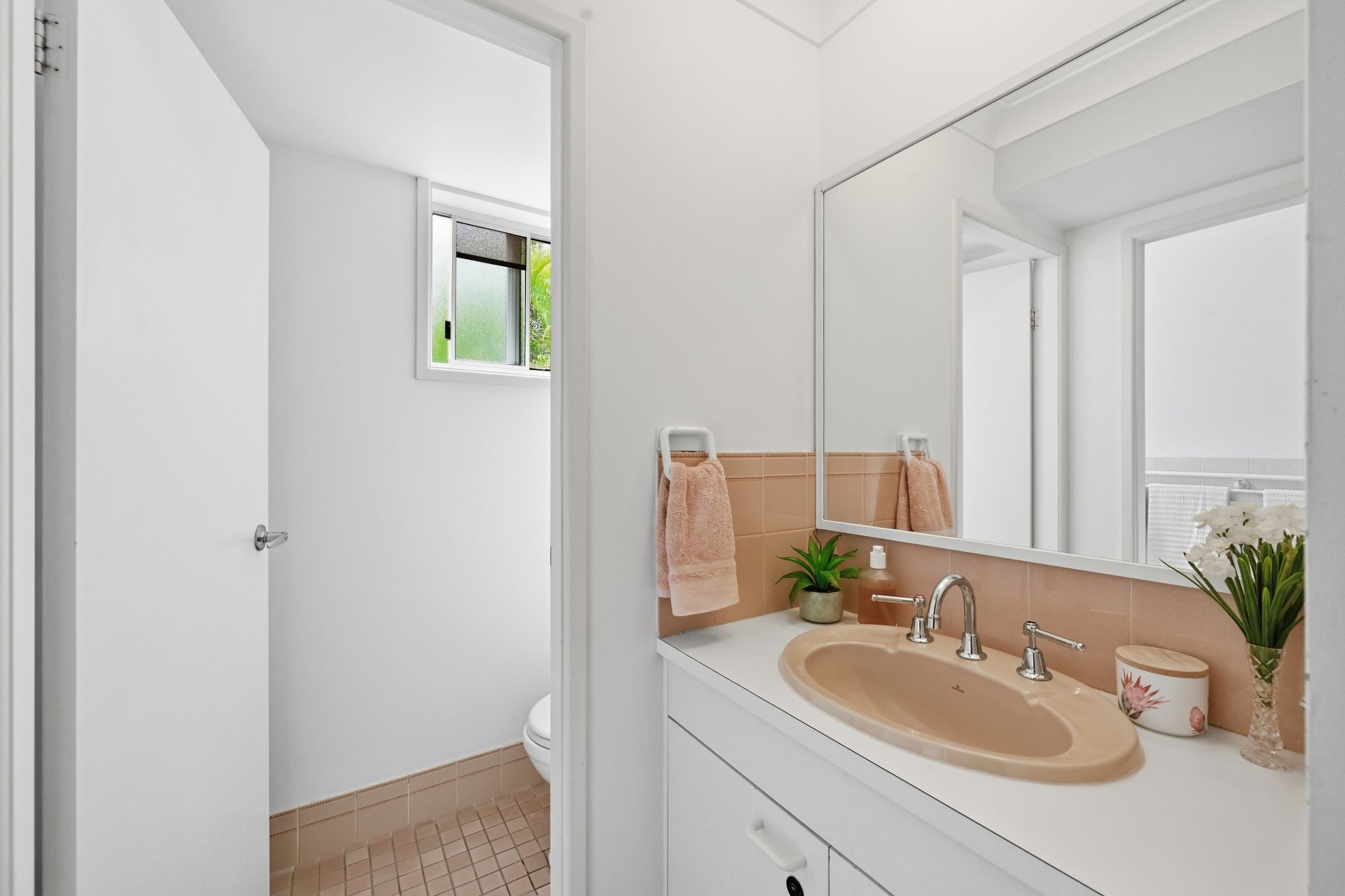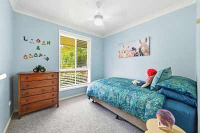 Four good-sized bedrooms are on the upper floor and each have ceiling fans and leafy green backdrops, with three having built in-wardrobes. These are serviced by an immaculate three-way bathroom.