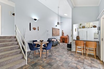 As you head down to the heart of the home, high raked ceilings create a WOW factor and a feeling of grand space throughout, where functional, separate living zones are found. A spacious, air-conditioned lounge room is the ideal spot for relaxing or watching a favourite movie and this leads through to an open plan kitchen, living and dining room, which is the perfect hub for everyday living.